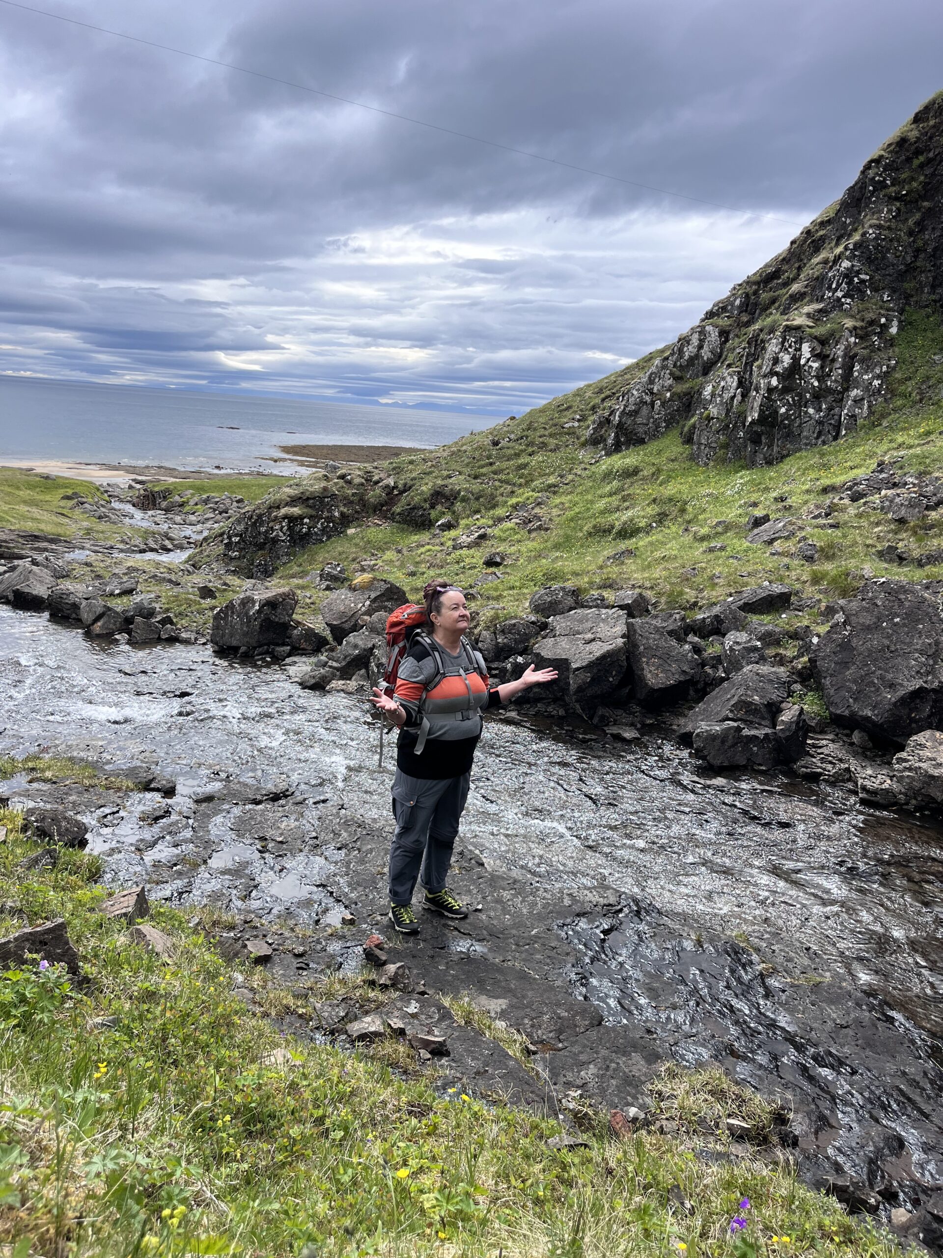 Við göngum um Mórudal upp með ánni Móru, þar geta þær sem það vilja baðað sig í tærum hyl í ánni, við skoðum Surtarbrandsgilið fyrir ofan Brjánslæk, göngum Reiðskörð sem geyma myrka sögu, syngjum saman fallega sálma í kirkjunni á Brjánslæk, förum upp að hinum forna bæ Haga og skoðum okkur um, trítlum berfættar í mjúkum sandinum i Hagavaðli, göngum í Siglunes og upp að “Þríhyrningskirkjunni” sem ég uppgötvaði undir Sigluneshlíðum, skoðum Ellakofa og syndum í sjónum við Siglunes.